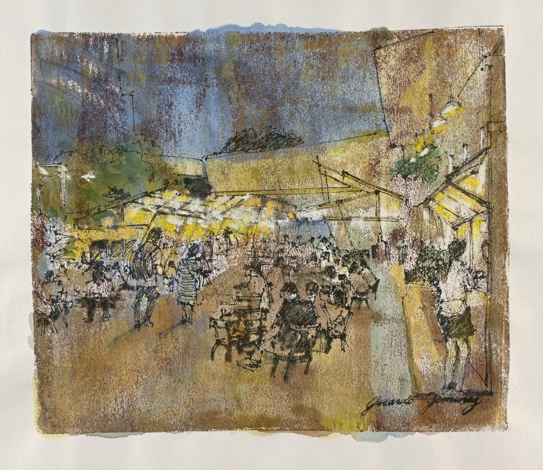 acrylic, and pen & ink on paper, soft pasel