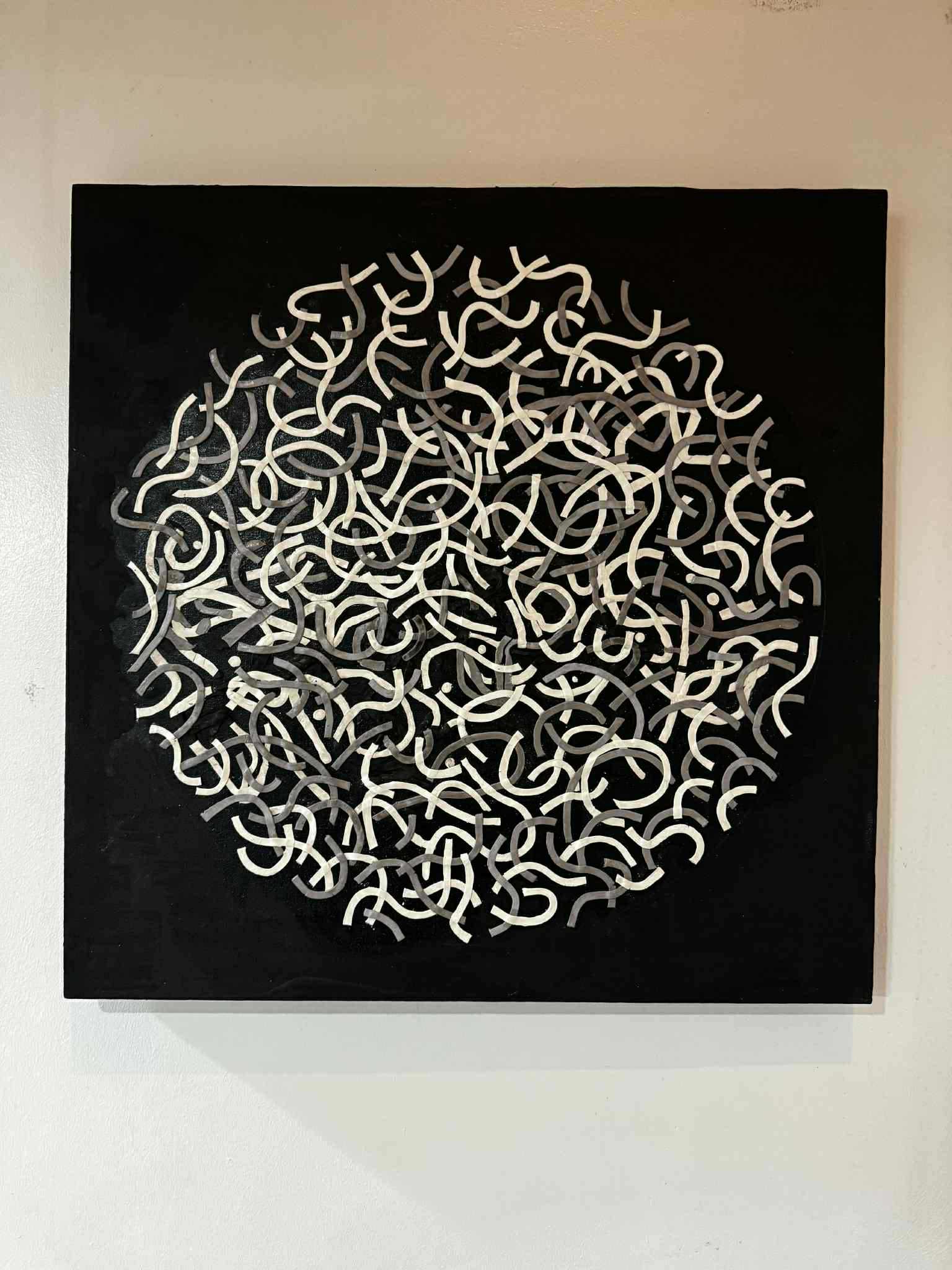 acrylic, and canvas on wood), mixed media (clay