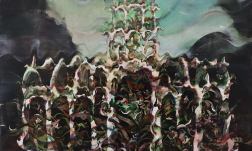 In “Screaming Gardens,” Eric Pasino and Wenliang Zhao present a landscape overtaken by organic growth and visual mutation. Vegetation expands beyond the decorative backdrop, forming thick, immersive spaces where creatures and fragmented forms surface only to be partially reabsorbed into the environment. The exhibition unfolds as both a fertile terrain and a site of unease.